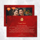 This Chinese wedding thank you card features an artistic gold double happiness sign and "thank you" words in an modern handwritten script on a red shimmering background. With a custom wedding thank you text, your photo and your names and wedding date.