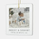 This simple and elegant Christmas ornament adds a modern touch to your holiday decor. Designed with minimalist typography and a soft handwritten calligraphy script, it highlights your favorite family or couple photo in a warm and meaningful way.