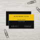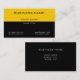 This simple modern yellow and black coloured business name card with black and white text including business name, business title and contact phone, fax, email, mail address and website name is a nice choice for a professional individual such as writer, designer, consultant, lawyer, doctor, event planner, artist, finance professional, real estate professional, dentist, legal professional, accountant etc. Customize it to make it personal and special.
