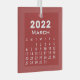 Modern Simple Red March 2022 Month Calendar Glass Ornament