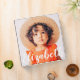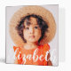 Design is modern and simple. Add a custom photo and add his/her name. The colour of the typography works best on a photo which has colour at the typography part so that it will pop out.