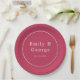 Modern Simple Script Viva Magenta Stylish Wedding Paper Plate
