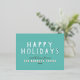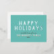 Modern Simple Silver Foil Typography Family Happy Foil Holiday Postcard. The design has a turquoise background. You can customize all the text.