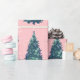 Hand painted in watercolors, spruce trees pattern on pink backgrouns, bringing festive spirit, best for the holiday season gift wrapping