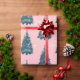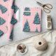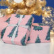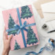 Modern Simple Snowy Green Christmas Trees Pink Wrapping Paper