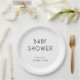 Modern Simple Text Black and White Baby Shower Paper Plate