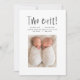 Two cute graphic twin photo birth announcements. Modern graphic fun chic marker pen typography design. Natural tan brown backer colour can be changed and is available in a variety of colours.
