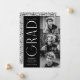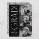 Stylish graduation announcement featuring the graduate's three photos located to the right of the design in a vertical layout. "Grad" is displayed in white, modern art deco lettering with a black background. Personalize the modern photo graduation announcement by adding the graduate's name, graduation year, and school name. The design reverses to display a black and white geometric swirl background. Perfect for both high school and college graduations!