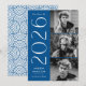 Celebrate your graduate’s achievement with this modern Class of 2026 photo graduation announcement, designed with a clean art deco style. The front of the announcement features three of the graduate’s photos arranged vertically along the right side, paired with “2026” displayed in crisp white art deco lettering against a classic blue background. Personalize the announcement with the graduate’s name and school to create a meaningful and stylish keepsake. The back of the announcement showcases a coordinating blue and white geometric swirl pattern, completing the contemporary design. Perfect for both high school and college graduations, this multi-photo graduation announcement offers a polished way to share the Class of 2026 milestone.