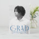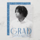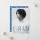 Celebrate your graduate’s accomplishment with this elegant and simple graduation announcement. Featuring a vertical photo of the graduate, the word "Grad" is displayed in bold blue, modern art deco lettering for a chic and contemporary look. Personalize the front of this single-photo graduation announcement by adding the graduate's name, school, and graduation year. The reverse side showcases a stylish blue and white geometric swirl design, adding a touch of sophistication. Ideal for both high school and college graduates, this customizable announcement is the perfect way to share the exciting news with loved ones.