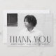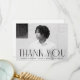 Celebrate your graduate’s achievement with this simple and modern graduation thank you card. The design highlights the graduate’s horizontal photo on the front with Thank You displayed in bold black art deco lettering. Personalize with the graduate’s name, school name, and graduation year to create a meaningful keepsake. The back includes space for your custom thank you message in black lettering—or leave it blank for a handwritten note. A timeless way to show appreciation for thoughtful gifts and support.