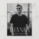 Simple graduation thank you postcard featuring the graduate's vertical photo with "Thanks" displayed in white, modern art deco lettering. Personalize the front of the photo graduation thank you postcard by adding the graduate's name, school name, and graduation year. The postcard reverses to display your return address and provides space for your typed or handwritten thank you message.