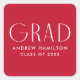 Modern graduation stickers featuring "Grad" displayed in white art deco-style lettering with a red background or color of your choice. Personalize the simple graduation stickers by adding the graduate's name and graduation year. The personalized graduation stickers are perfect for sealing envelopes, graduation favor bags, etc.
