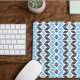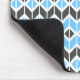 This mouse pad features a colourful geometric herringbone pattern in blue, dark grey, and white.