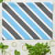 This kitchen towel features a beautiful diagonal striped pattern in sky blue, dark grey, and white.