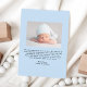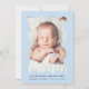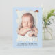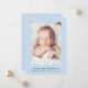 Announce your baby's arrival with this modern and minimalist birth announcement card, featuring your baby's vertical photo showcased in a charming wavy frame on a light blue background. Below the photo, easily personalize the design with your baby's name and birth stats in clean, elegant fonts. The back of the card includes a horizontal photo with space for your custom message — perfect for sharing a sweet note with friends and family. This simple yet stylish birth announcement blends contemporary design with a touch of retro flair and is ideal for gender-neutral baby announcements.