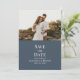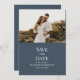 Announce your special day in style with our Modern Slate Blue Custom Photo Save the Date Card. The top half features a photo, complemented by white text against a slate blue background below. The back displays elegant white monograms on a dusty blue backdrop. A chic and personalized way to mark your wedding date.