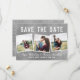 Share your news with this chic save the date card featuring three snapshot photos and a textured grey background.