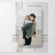 Your holiday photo will make an elegant statement with this photo template design featuring sleek modern gold and silver gradient bands and deep drop shadow effect with editable text fields. Panels feature additional photo templates and text fields.