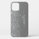 Modern iPhone 12 case in grey and sliver glitter, elegantly adorned with your script first name.