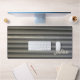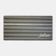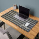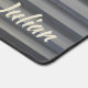 A bold sophisticated desk mat with modern monochromatic stripes in smokey shades of grey personalized with a Name.