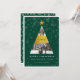 This design is perfect for any family looking for a modern, elegant Christmas photo card. Stand out from the crowd with this unique holiday greeting card! This design features a festive green background with a snowflake overlay. In the centre of the design is a triangle Christmas tree frame with a gold centerpiece with the year, a gold star on the top, and 2 of your family photos above and below. Under the tree, it reads "Merry Christmas with lots of love from" and your family name. Click the "personalize" button to add your own images and family name.