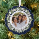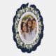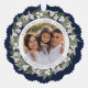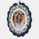 Modern Snowberry Greenery Wreath Navy Photo Ornament Card