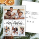 Elegant Modern Black and White 4-Photo Collage Merry Christmas Holiday Card. Share festive cheer with this elegant and modern black-and-white holiday card. The front features a clean four-photo collage accented with subtle snowflake details, along with a beautifully hand-lettered Merry Christmas script in classic black typography on a crisp white background. The reverse side includes a matching white layout with space for your personalized holiday message.