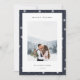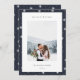 Share holiday greetings with these photo Christmas cards featuring your favourite photo set on a modern and minimal background of white snowflakes on contrasting midnight blue. An editable message area lets you customize your holiday greeting in modern lettering. Add your family name or names beneath.