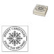 Winter holiday ink stamp featuring a modern style snowflake at the center. Around are your customizable name and text "Merry Christmas".