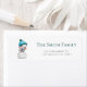 Adorable winter return address label with a snowman holding a cute pig. Illustrated and designed by Patricia Alvarez.