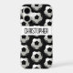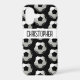 Celebrate your love of the beautiful game with this fun soccer ballv pattern iPhone 17 phone case. Personalize with a name in bold, modern typeface for a special touch. Never lose your phone again with this stylish, sporty case. Design may be transferred to numerous other phone types and models. Makes a great gift for the soccer, football or futbol fan, player or coach in your life!