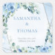 Modern soft pastel blue flowers silver frame sage square sticker