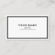 A set of modern business cards. The design has a white front, with a bold black border and lettering. The lettering has a space for you to add your name and job title. The back of the business cards are black with white lettering. At the top of the back of the card, there is the same space to put your name and job title. There is also space to add a telephone number, email address and website address in the center of the card. At the bottom of the card, there is space to add an address, if this is necessary.