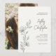 Modern Space Grey Foliage Outline Photo Wedding Invitation