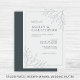 Classically elegant minimal wedding invitation featuring foliage outline frame corners and minimalist text details in grey green. Modern minimal design prioritizing functionality, balance and harmony aimed at setting an elegantly refined tone. Perfect for couples that embrace minimalist characteristics, straightforward simplicity and understated beauty. Back of card blank with coordinated background. ❀❀❀ Available in a curated selection of modern background colours. ❀❀❀ Fully personalizable and easily customizable. However, please reach out for assistance in personalizing or customizing to fit your wishes. Or, for assistance in creating related products to create your perfect wedding stationery suite. We're here to help and want to create your perfect wedding stationery.