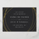 Announce your wedding date and location in chic modern style with these sleek save the date cards featuring abstract yet geometric detailing on a rich charcoal black background. Front features your wedding details in minimalist modern lettering, encircled by irregular sphere shapes in elegant rose gold. Add additional details, like your wedding website, to the back.