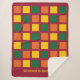 Modern spicy colours Sherpa Blanket with geometric squares in yellow, green and orange, against a burgundy background. There is a placeholder Christian quote - WRAPPED IN GOD'S LOVE - which is customizable, so you can personalize with your name or preferred message. Matching items are available for a coordinated look, especially for autumn fall season. Ideal for those cool nights.