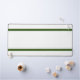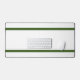 This sleek modern design features two horizontal bold top and bottom forest green edge stripes against a crisp white background.