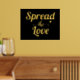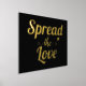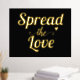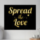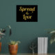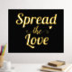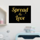 Modern "Spread the love" quote bold typography and heart gold foil on black print.