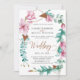 Elegant copper faux glitter calligraphy and watercolor magnolias wedding invitation featuring a big wreath with pink flowers, mint green foliage, eucalyptus leaves and glam copper glitter shapes over a clean white background. ++++++++++++++ Easy to personalize with your details on both sides! +++++++++++++ The invite is suitable for spring or summer garden / outdoor backyard / modern contemporary floral-themed weddings.