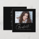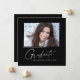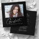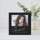 Modern square minimalist design, elegant "Photo" graduation announcement cards, featuring elements of modern text with a unique calligraphy ink script in white for darker background colour choices. The graduate's photo on the front of the card is accented with a delicate & minimalist gradient boarder. The back of the card offers personalized text spaces for information about your graduation. Black & White or easily customize the background to match your school's primary colour or any colour of your choice. Perfect for the high school, college and university grad student seniors.