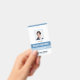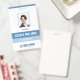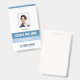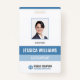 A modern and professional employee ID badge featuring a personal photo. The design shows the employees photograph, as well as the employee name in bold letters. Furthermore it includes the employees occupation and badge ID number. This modern staff ID badge can be personalized with your company's logo, business name and tag line or slogan. The back side of this ID badge is left blank and open for you to add more information, such as a bar code or employee contact details. The colours of any design elements can be personalized to match your company's colour scheme.
