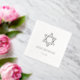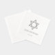 A simple and modern Star of David Bar Mitzvah paper napkin with silver foil text. Easily personalize these custom Bar Mitzvah napkins with a name, event and date.