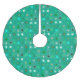 Tree skirt in a mid-century modern pattern of seven-point, outlined stars, in shades of aqua, seafoam green and jade, on a turquoise / peacock background