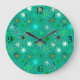 Modern Starburst Print, Turquoise and Aqua Large Clock
