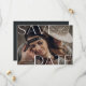 Announce your wedding date in unforgettable style with these elegant and modern photo save the date cards, featuring a full bleed horizontal or landscape oriented photo with "save the date" overlaid in white lettering at the corners. Your wedding date appears inside the letter D, with your names and wedding location alongside. Personalize the back with additional details, such as your wedding website.