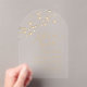 Sparkling gold string lights are the focal point for all the pieces of this simple wedding suite that also features elegant calligraphy and modern design layouts. The arch-shaped acrylic invitation shown here features the above plus optional 'best day ever' text and a template to easily add your event details. Search ID585 to see all the matching pieces in this beautiful wedding set.
