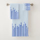 Modern stripe pattern in different shades of blue on pale blue background. Timeless chic for your bathroom, great gift! Wonderful bath towels. Designed by Marions Art
