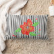 Black and white stripe pillow, with a red flower print. The flower image is removable. The white background can be changed to the colour of your choice.